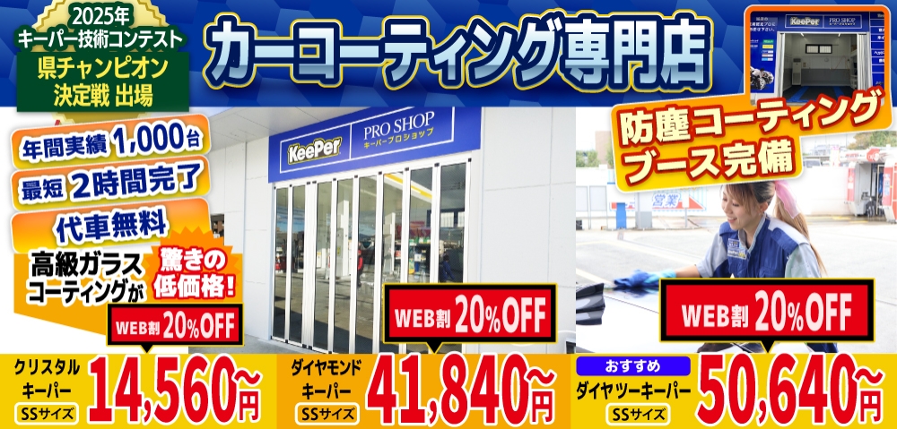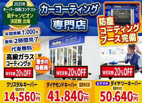 当HPをご覧になったお客様限定で、コーティングの施工料金20%割引を実施中!また、他社にはないお得な特典もお客様にご提供しております。キーパーコーティングをお考えのお客様は、是非、当店にお任せください!