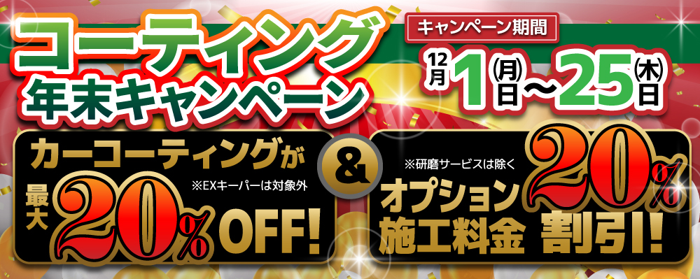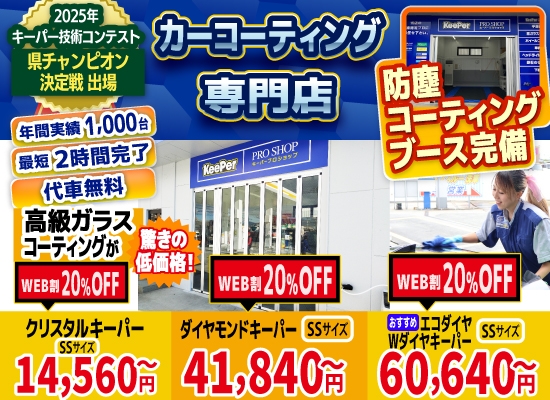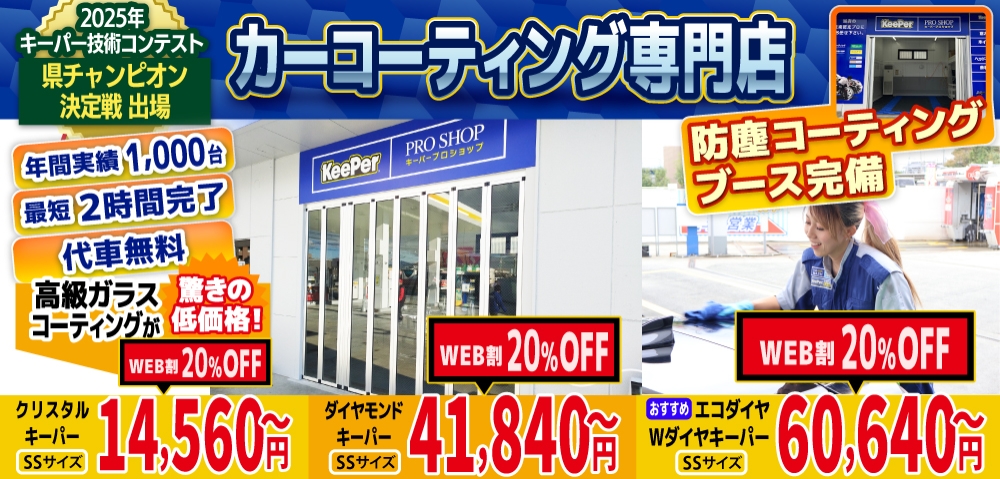 当HPをご覧になったお客様限定で、コーティングの施工料金20%割引を実施中!また、他社にはないお得な特典もお客様にご提供しております。キーパーコーティングをお考えのお客様は、是非、当店にお任せください!