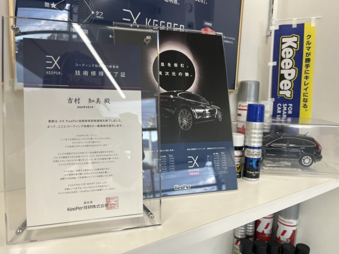 当店には、キーパーコーティングの最高資格であるコーティング1級技術士の資格を持つスタッフが在中しております!