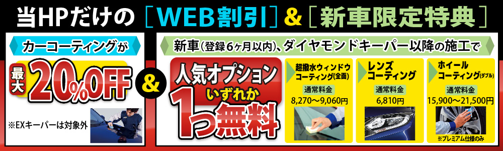 ※キーパー施工車限定 ※キーパーコーティングとの同時施工メニューではないため、WEB割引の対象外となります。
